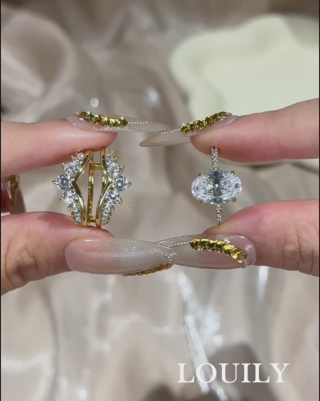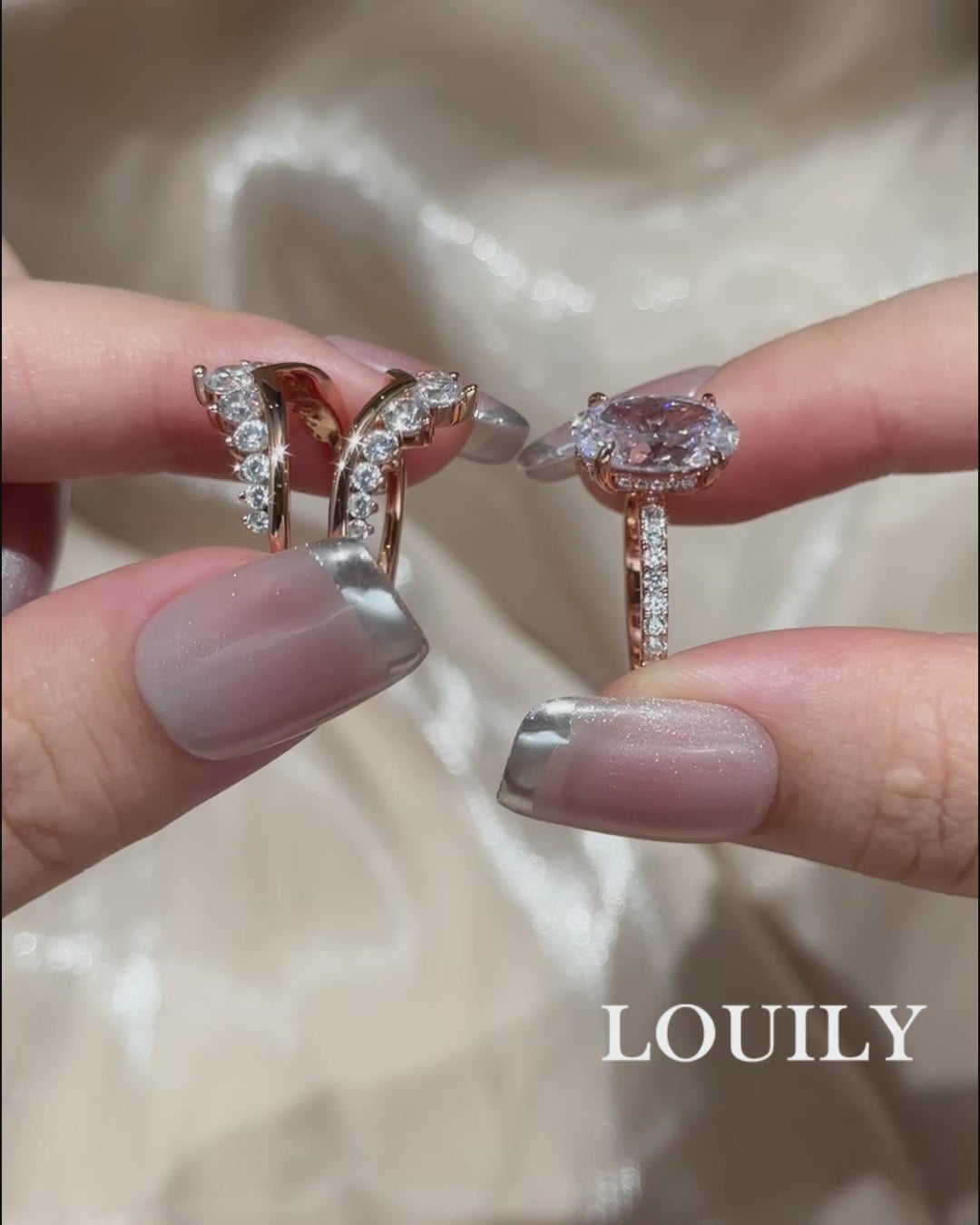 Louily Exclusive Oval Cut Wedding Ring Set With Jacket Wedding Band