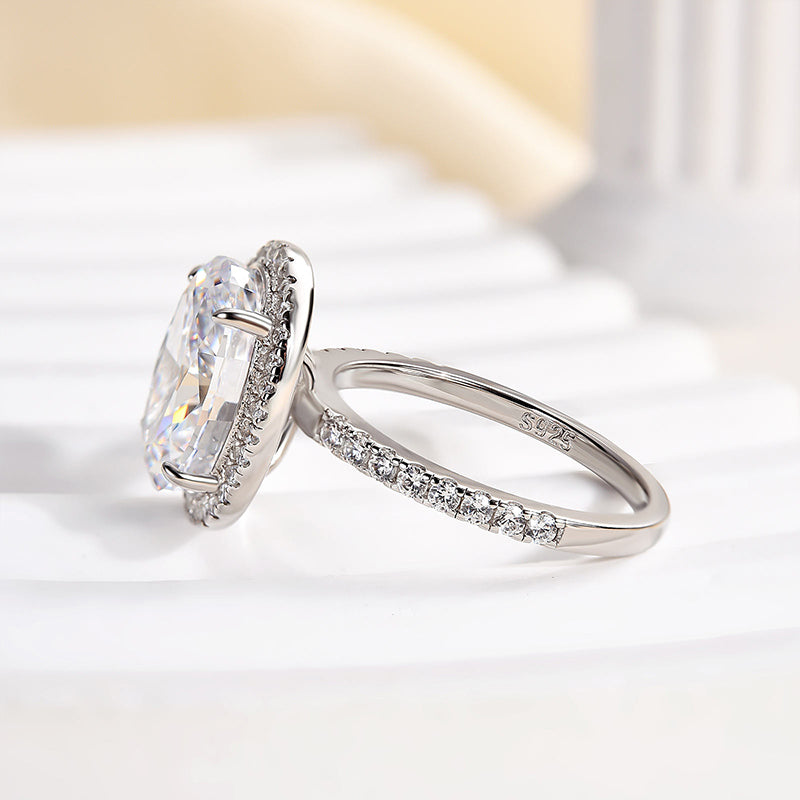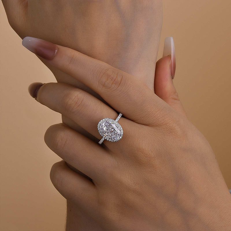 Louily Exquisite Halo Oval Cut Engagement Ring For Women In Sterling Silver