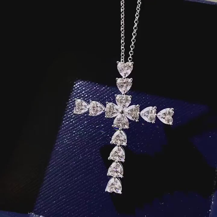Louily Fashion Heart Cut Cross Design Pendant Necklace In Sterling Silver