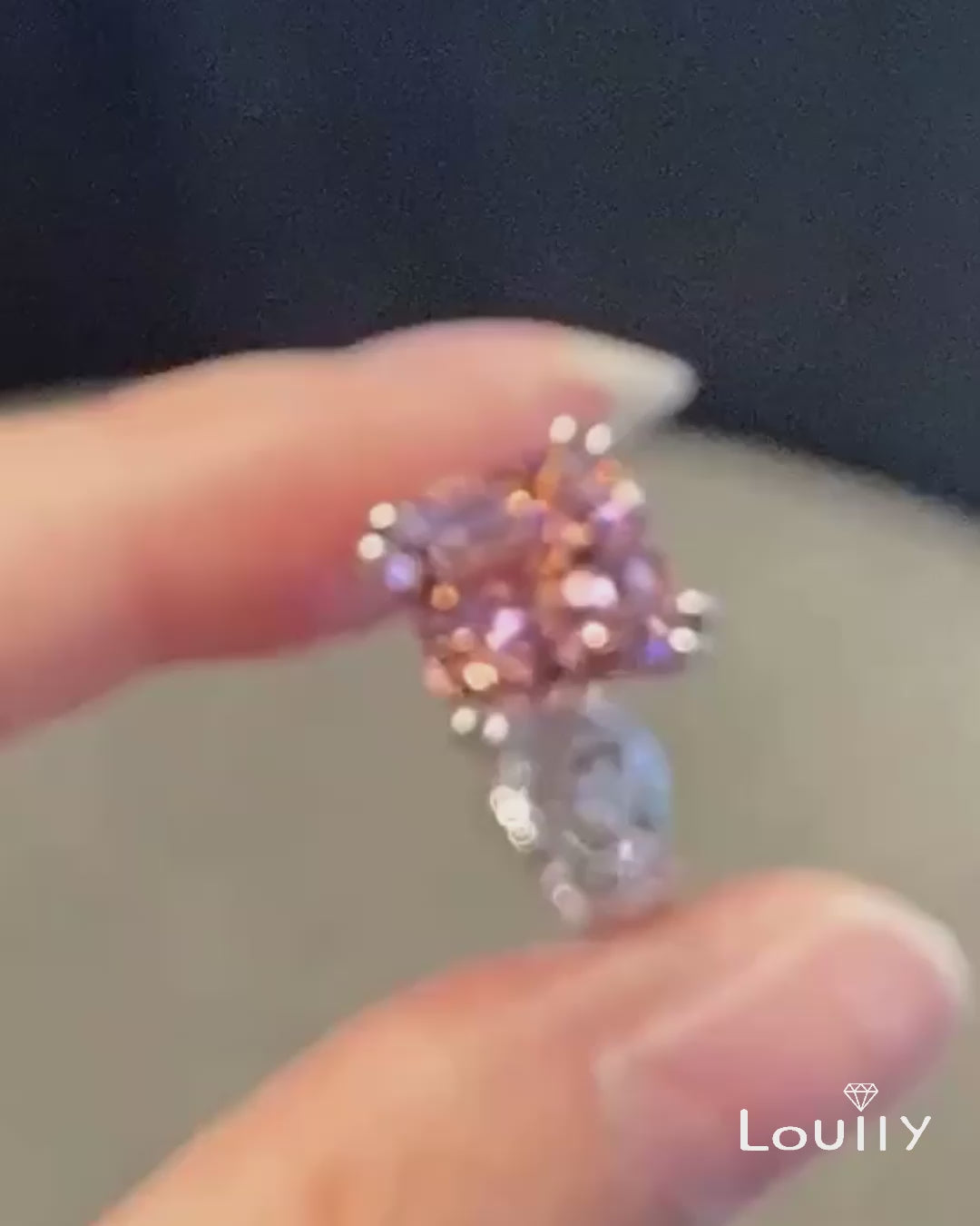 Louily Gorgeous Asscher Cut Morganite Pink Engagement Ring