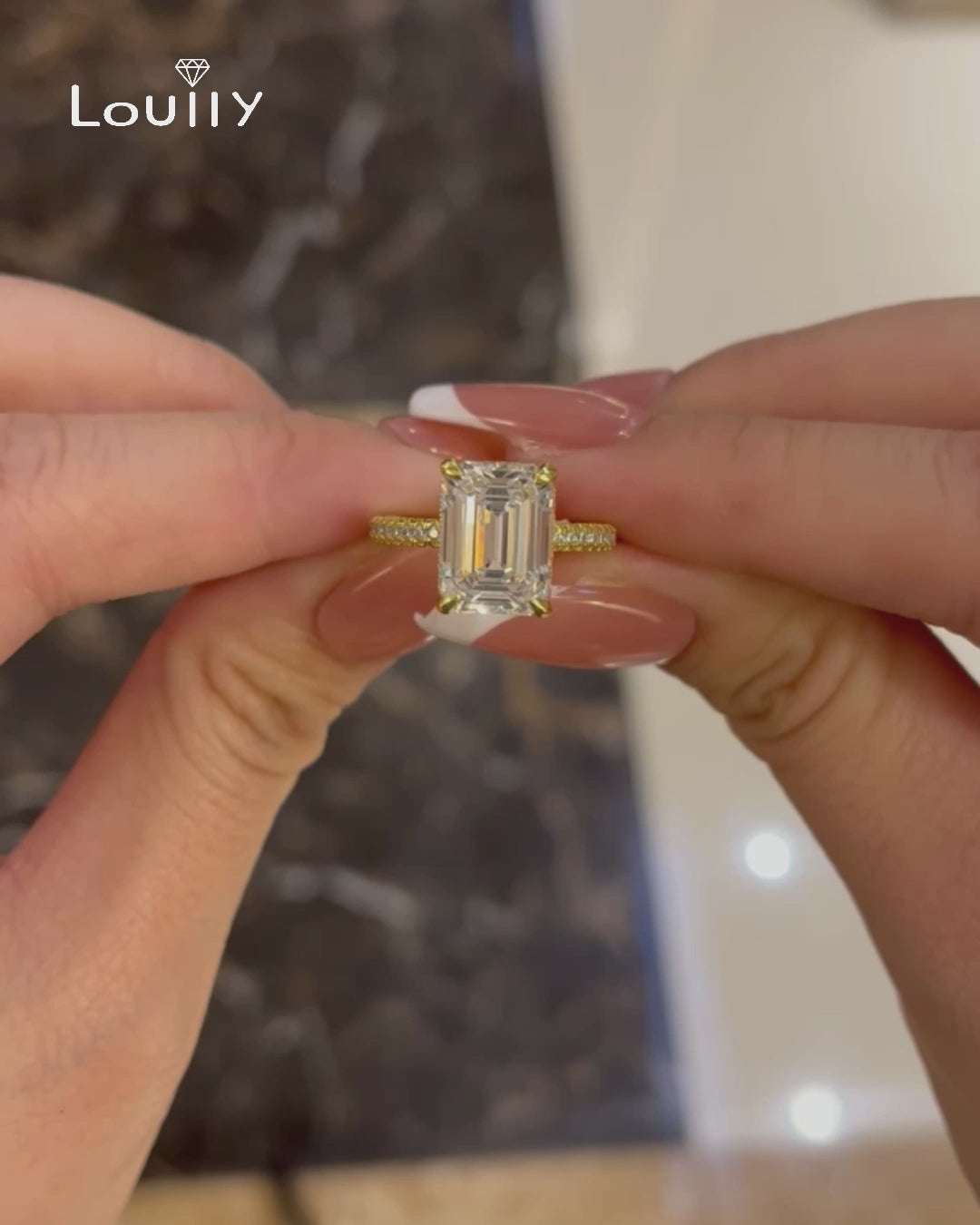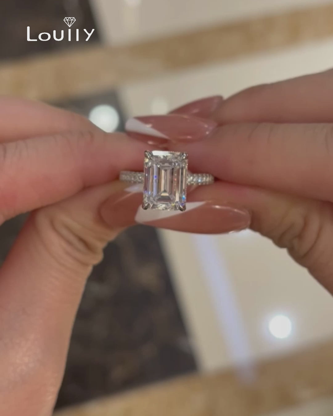 Louily Gorgeous Emerald Cut Engagement Ring For Women In Sterling Silver