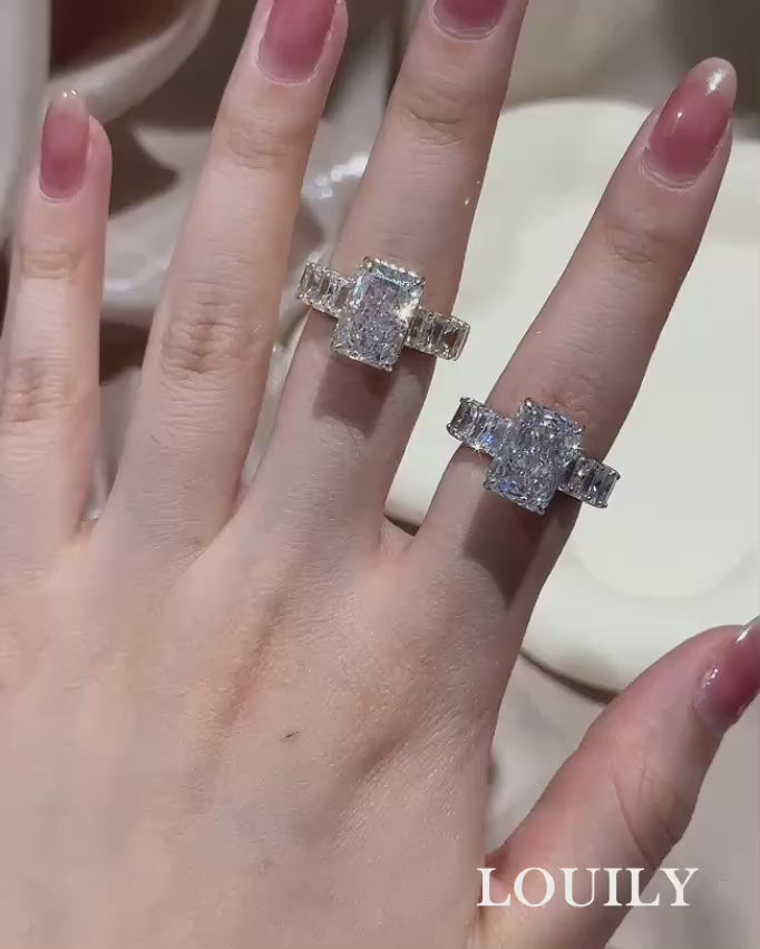 Louily Gorgeous Radiant Cut Engagement Ring For Women In Sterling Silver