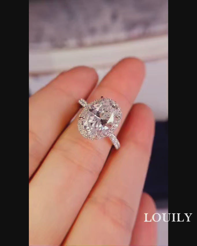 Louily Halo Oval Cut Simulated Diamond Engagement Ring In Sterling Silver