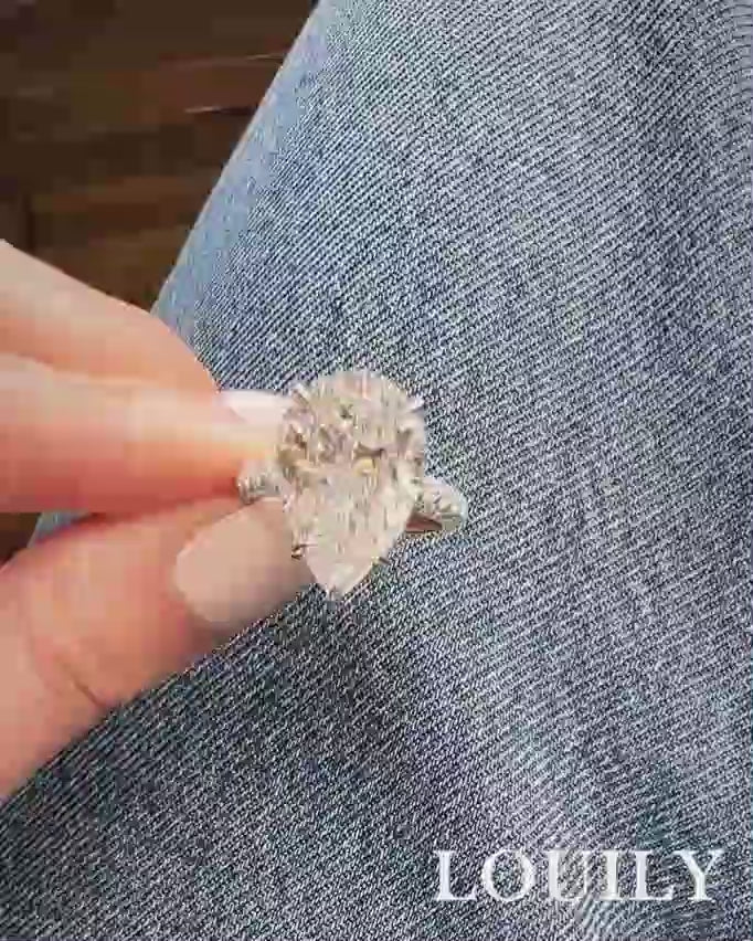 Louily Honorable 8.0 Carat Pear Cut Simulated Diamond Engagement Ring In Sterling Silver