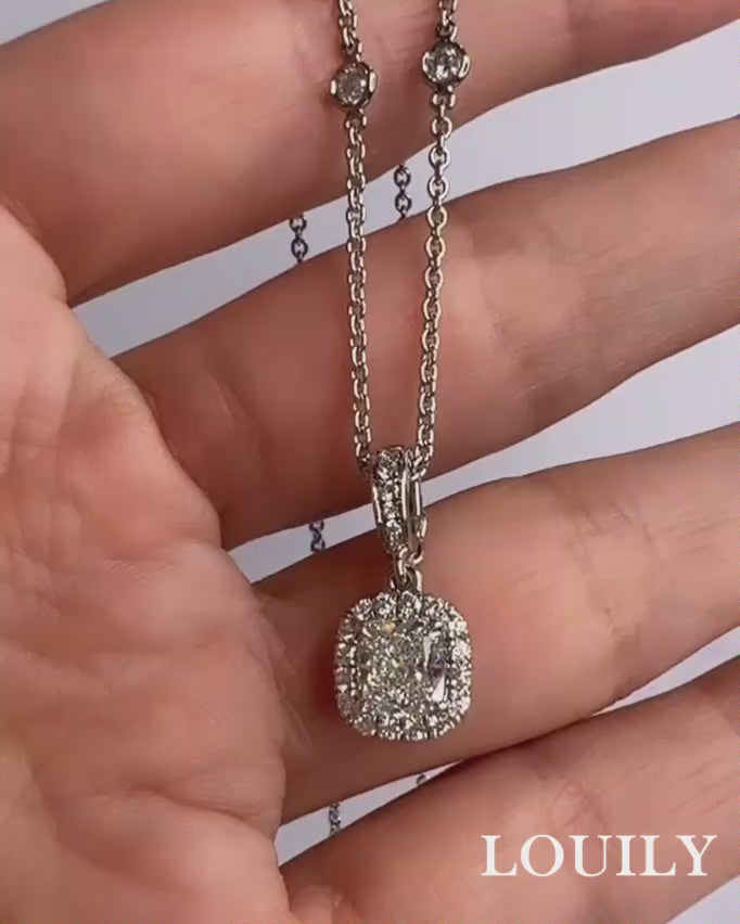 Louily Ice Cushion Cut White Stone with Necklace In Sterling Silver