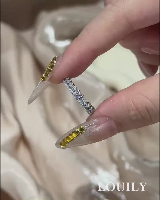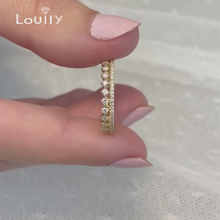 Dare to make a statement with this timeless Louily Lovely Yellow Gold Two Rows Round Cut Wedding Band In Sterling Silver! Crafted in silver with yellow gold details, this stunning band will make you stand out from the rest! Bring some sparkle to your special day!
