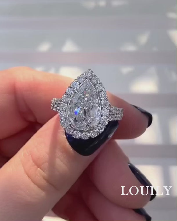 Louily Luxurious 2.5Ct Pear Cut Engagement Ring In Sterling Silver