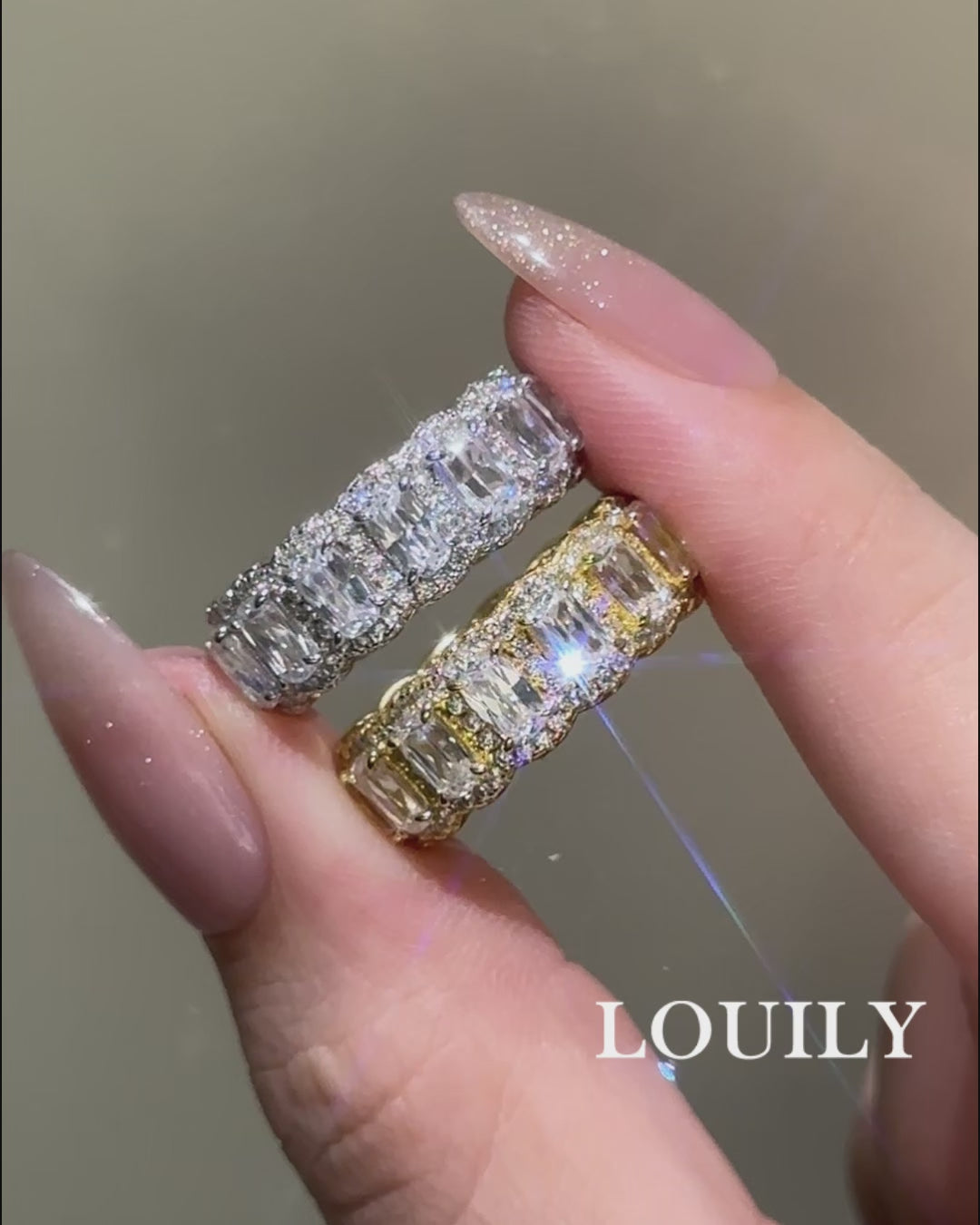 Louily Luxurious Halo Cushion Cut Wide Wedding Band For Women In Sterling Silver