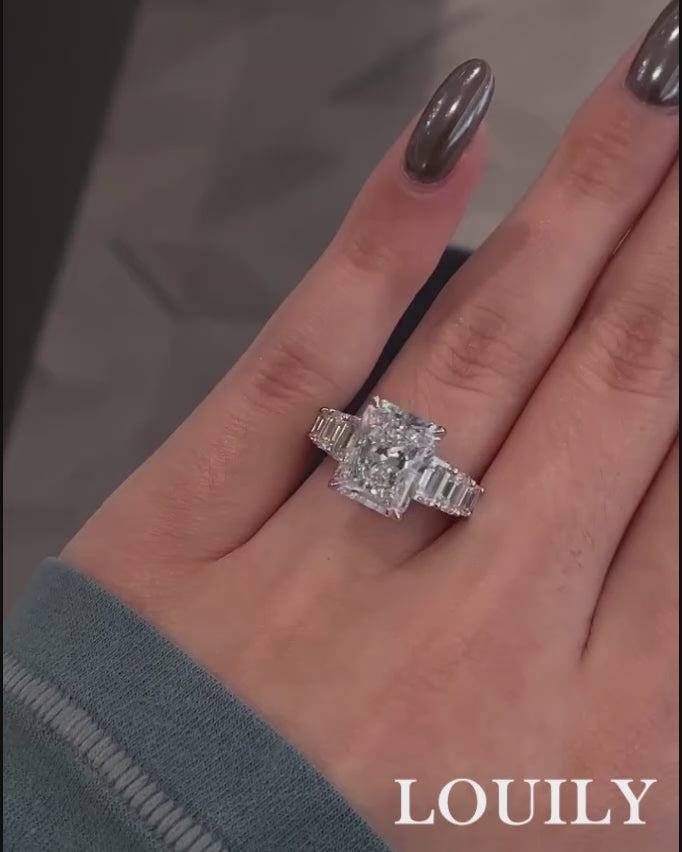 Louily Luxurious Radiant Cut Engagement Ring In Sterling Silver