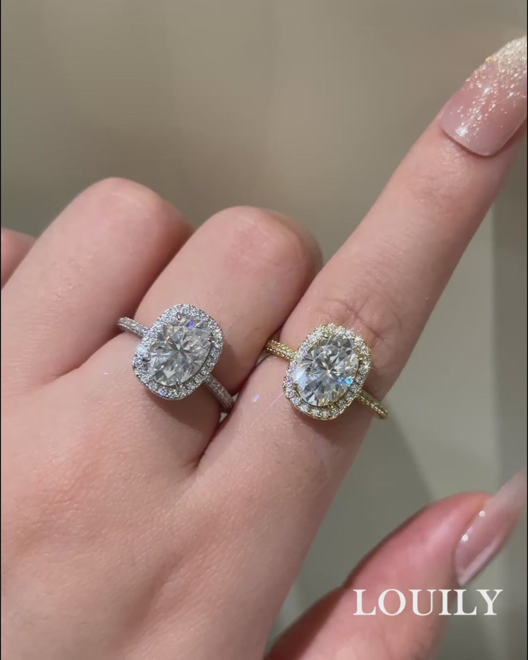 Louily Moissanite Special 2.5 Carat Halo Oval Cut Engagement Ring