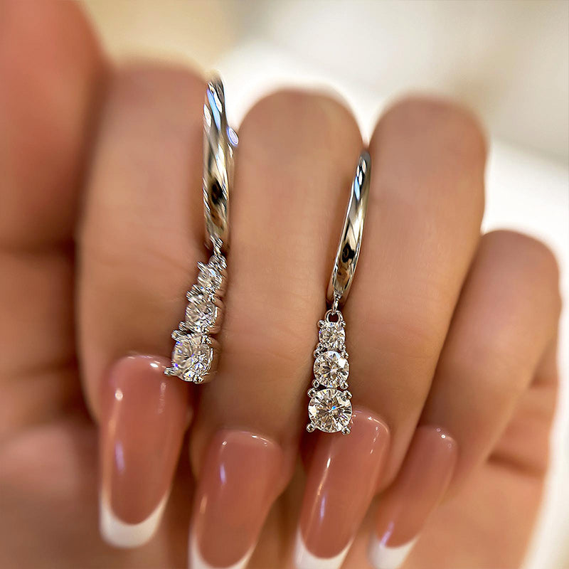 Louily Moissanite Three Stone Round Cut Tassel Stud Earrings