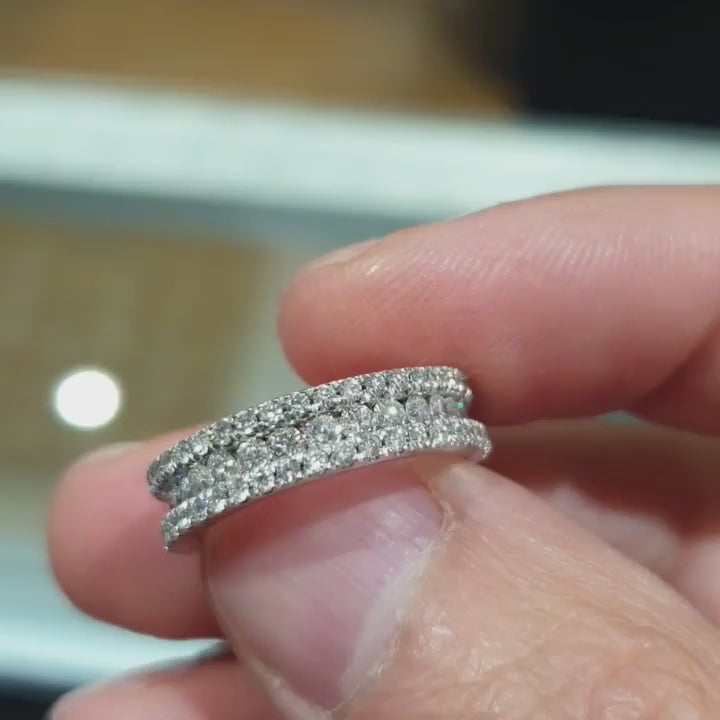 Louily Sparkle 3 Row Design Round Cut Wedding Band
