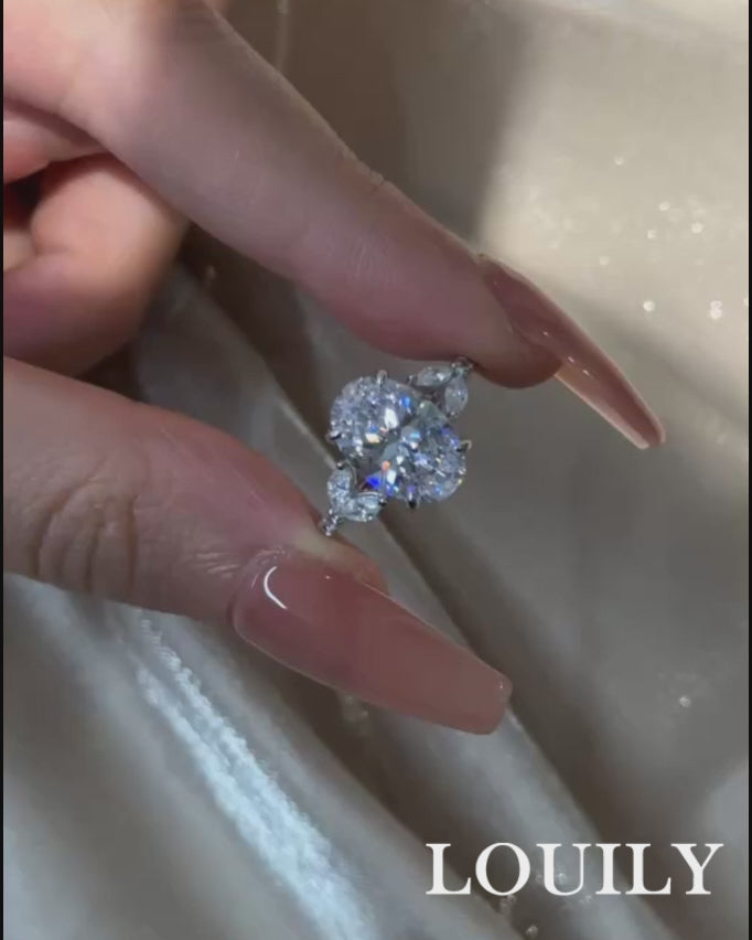 Louily Sparkle Five Stone Yellow Gold Oval Cut Engagement Ring In Sterling Silver