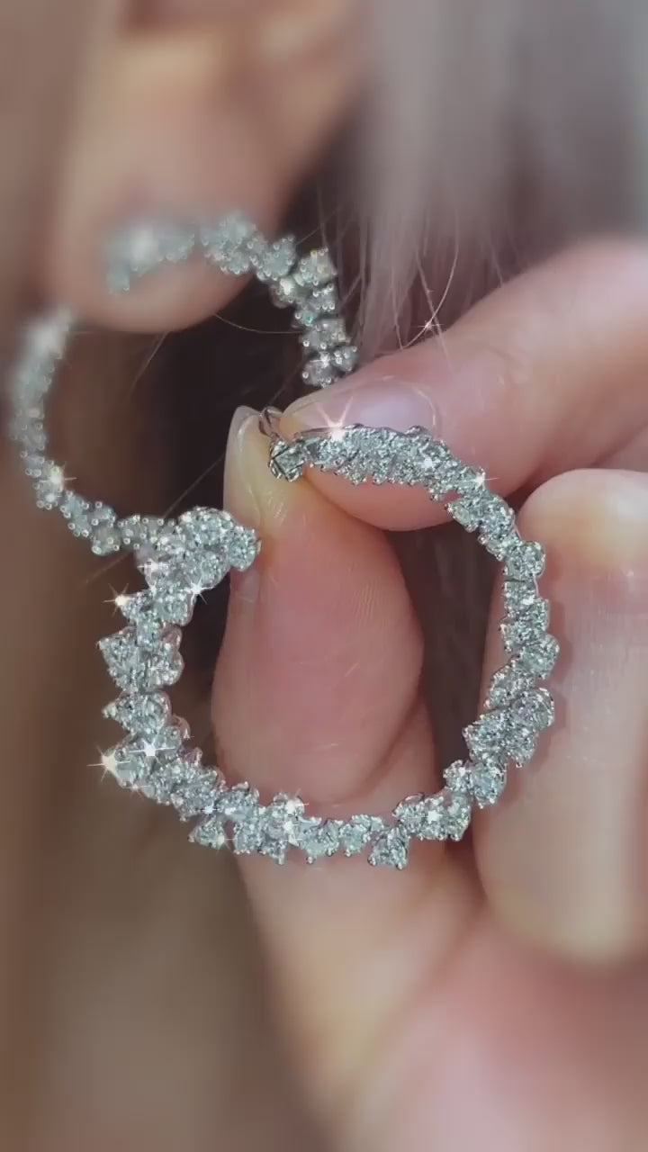 Louily Sparkle Round Cut Women's Hoop Earrings In Sterling Silver