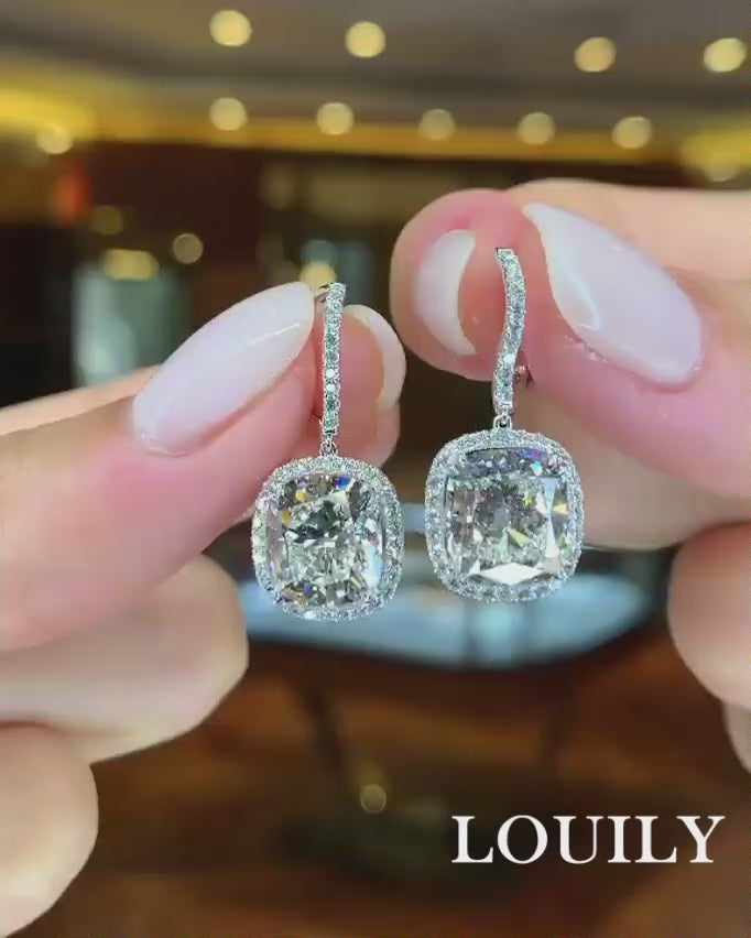 Louily Special Halo Design Cushion Cut Women's Earrings
