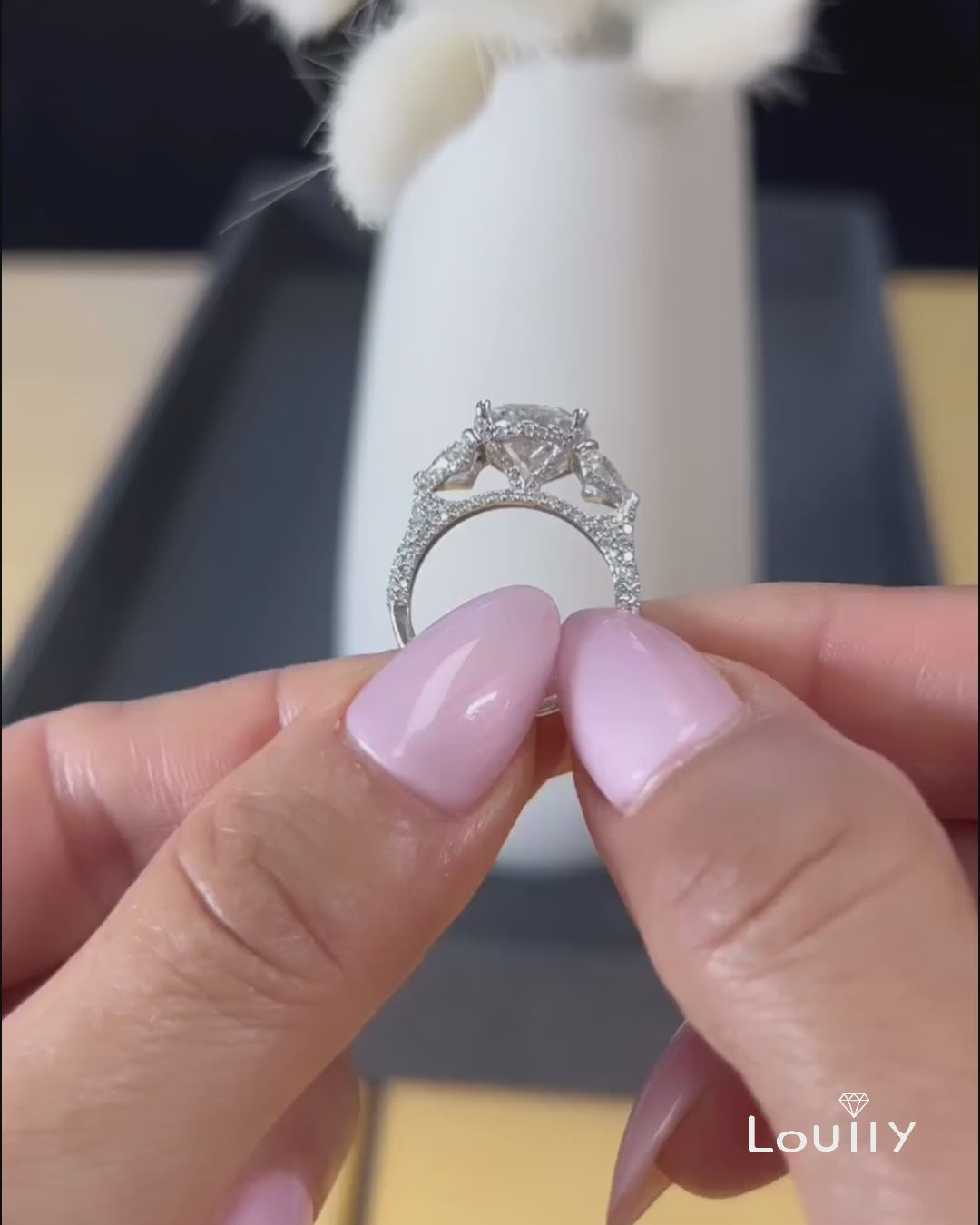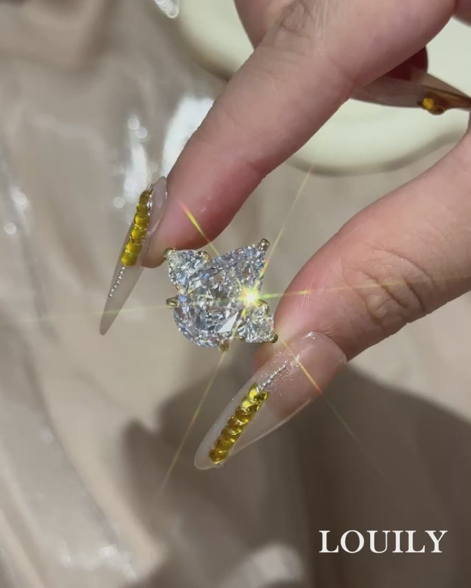 Louily Stunning Pear Cut Three Stone Engagement Ring