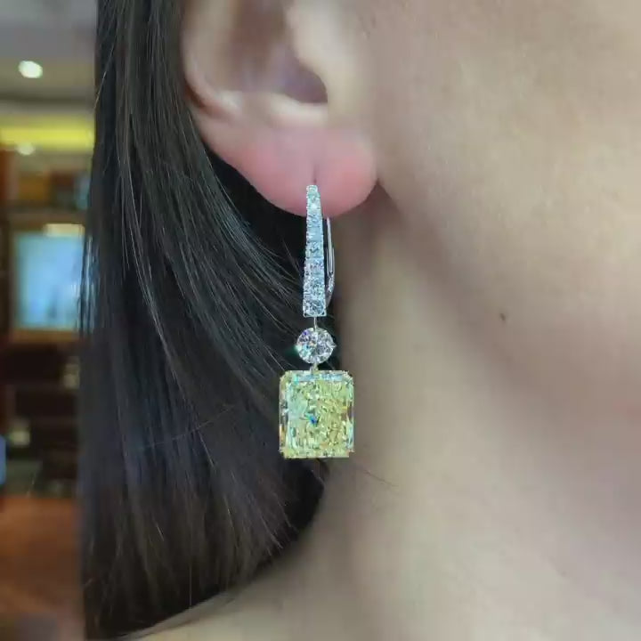 Louily Stunning Radiant Cut Yellow Sapphire Women's Earrings In Sterling Silver