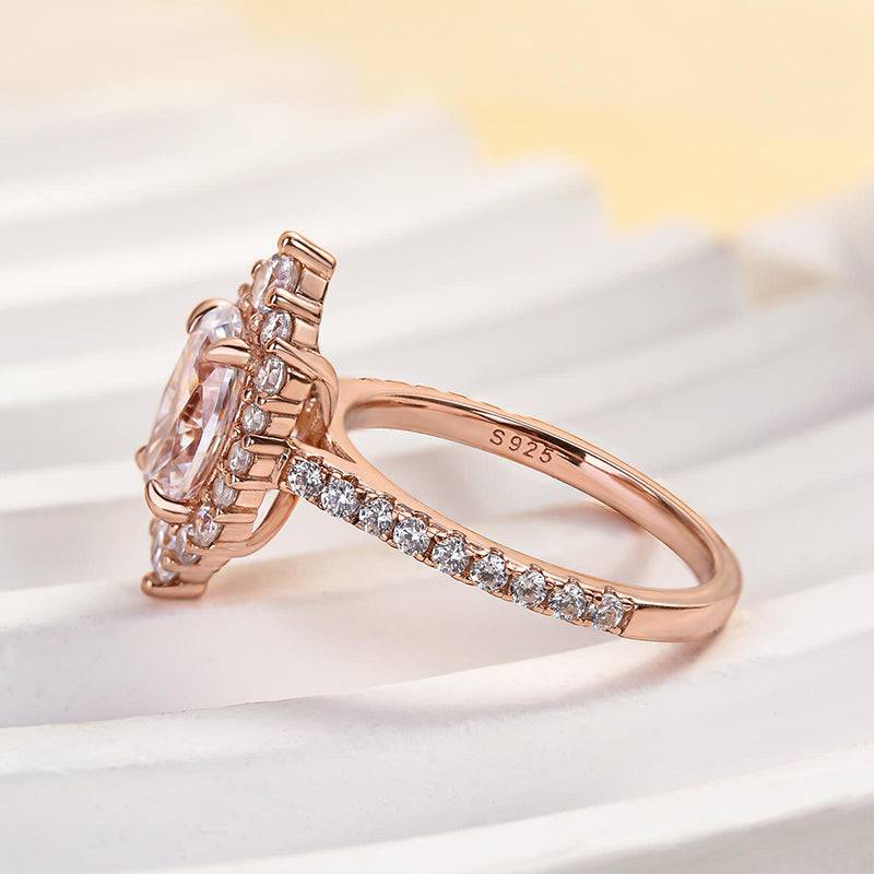 Louily Unique Design Halo Oval Cut Simulated Diamond Engagement Ring In Sterling Silver