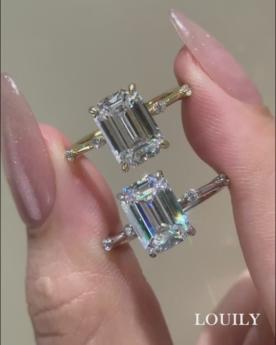 Louily Unique Emerald Cut Engagement Ring For Women