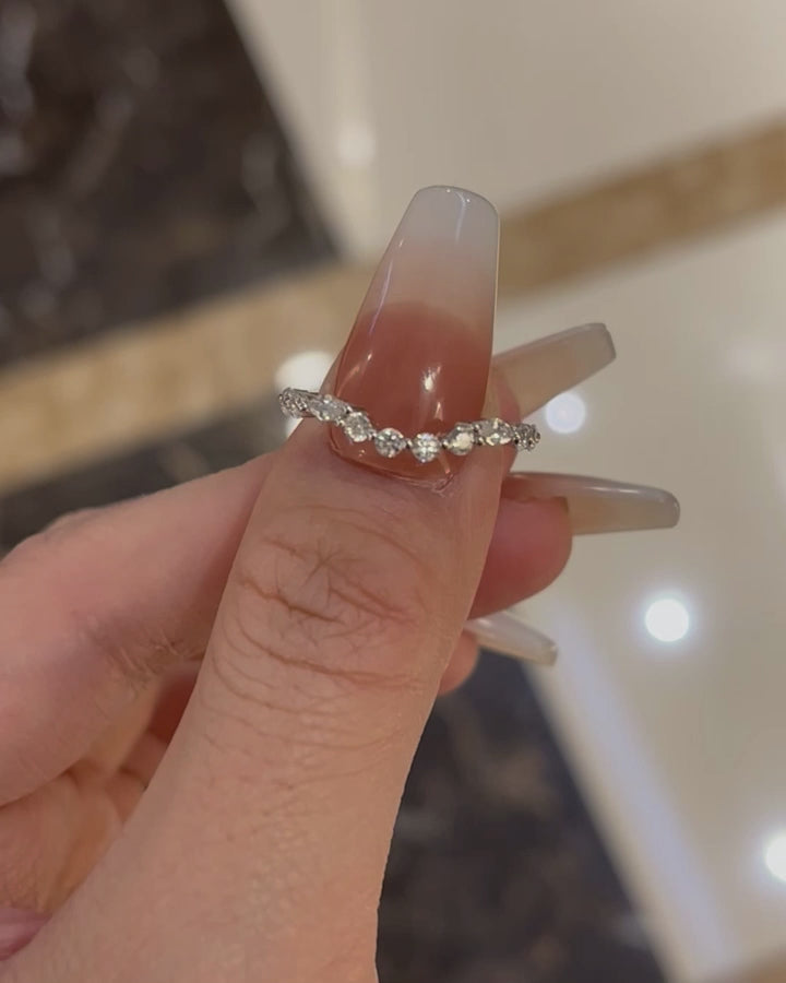 Louily Unique Half Round & Marquise Cut Wedding Band In Sterling Silver
