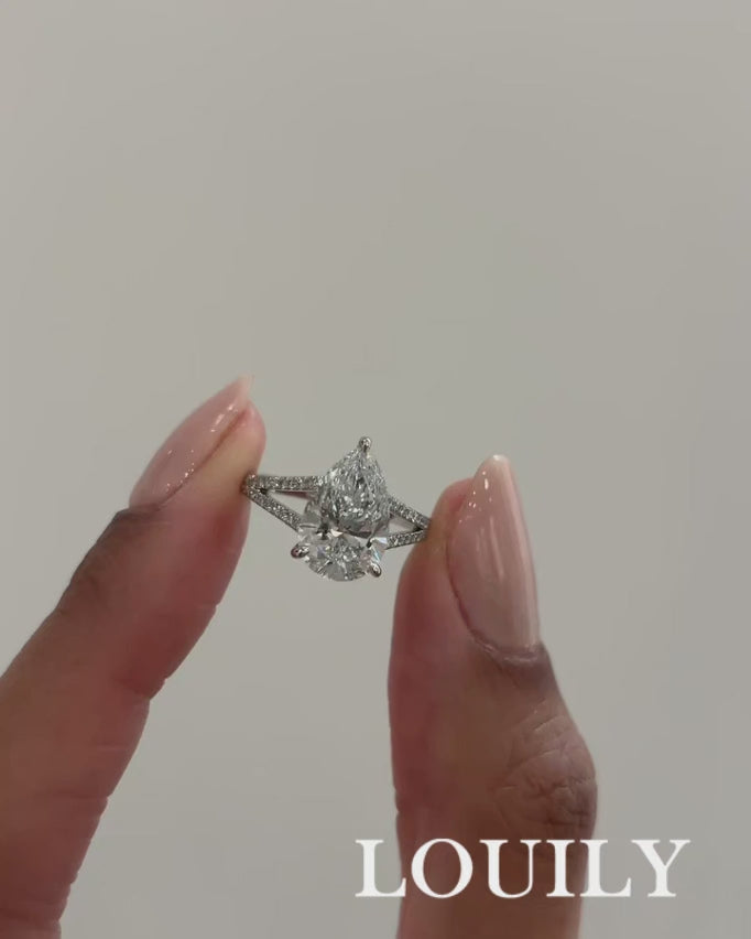 Louily Unique Split Shank Pear Cut Engagement Ring In Sterling Silver