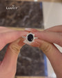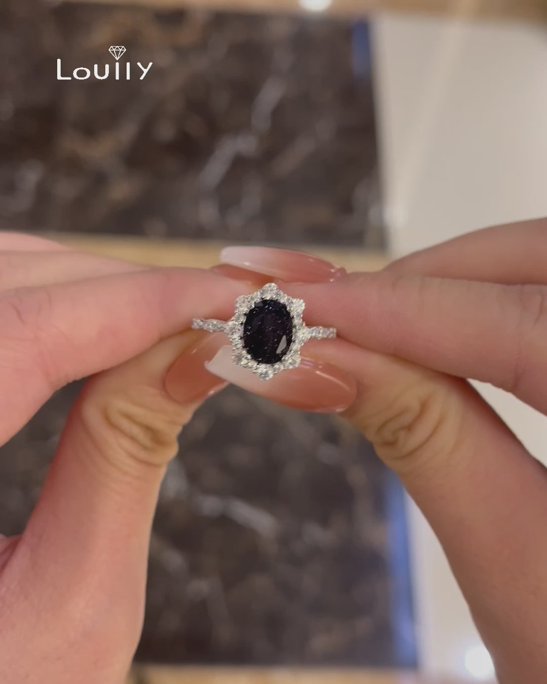Louily Vintage Halo Oval Cut Black Sandstone Engagement Ring