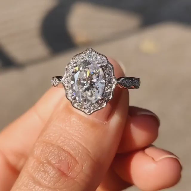 Louily Vintage Halo Oval Cut Engagement Ring In Sterling Silver