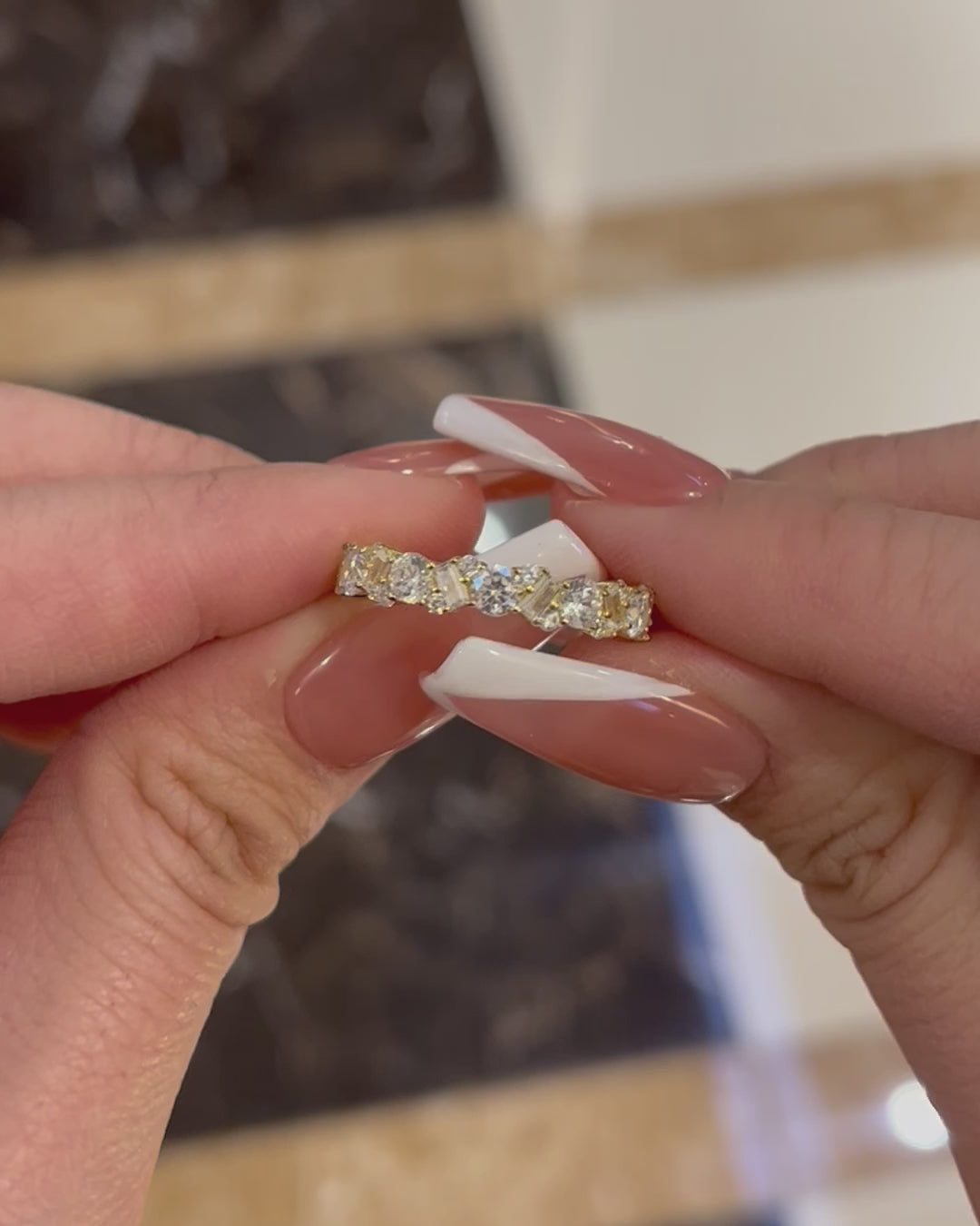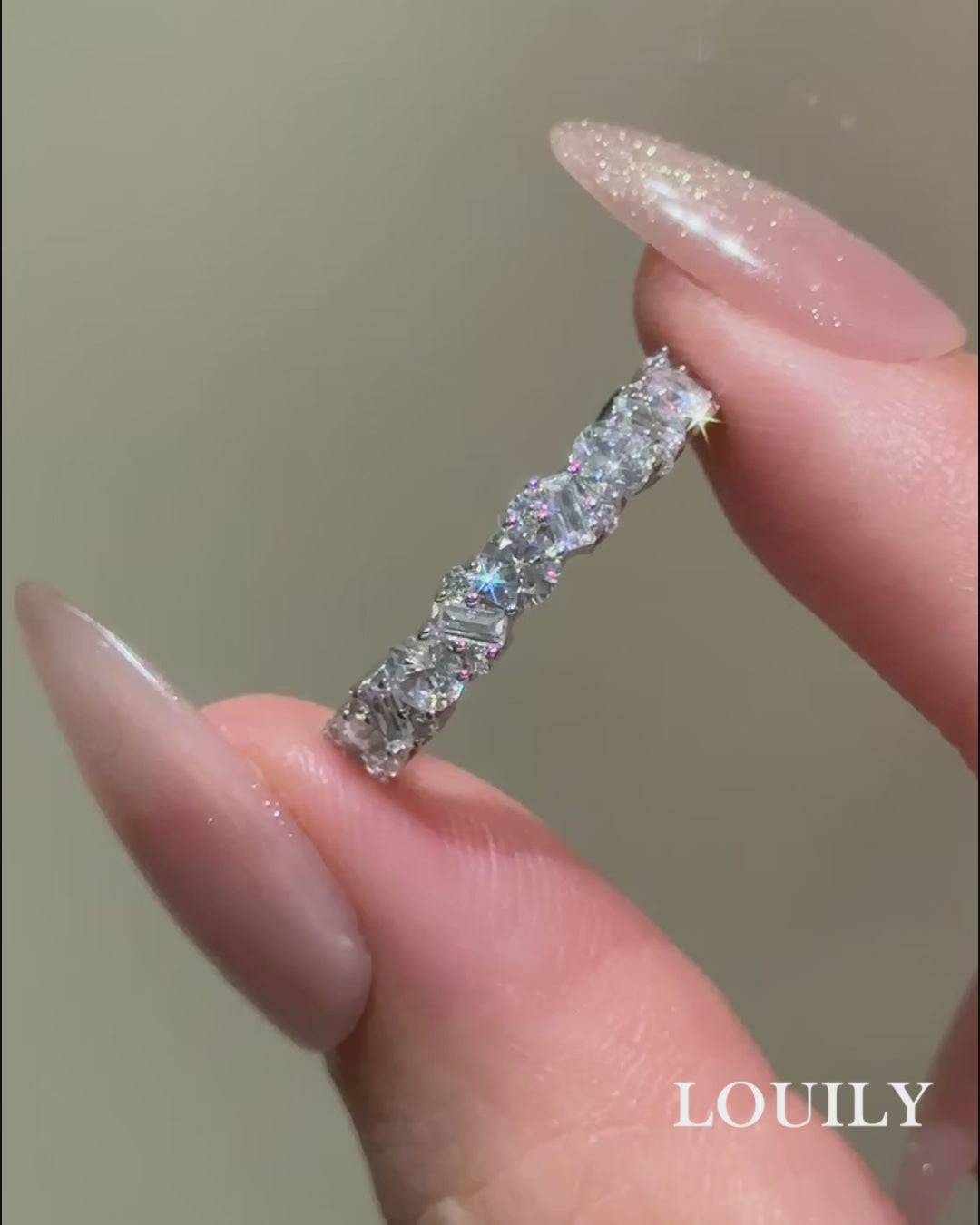 Louily Yellow Gold Round Cut & Emerald Cut Wedding Band In Sterling Silver