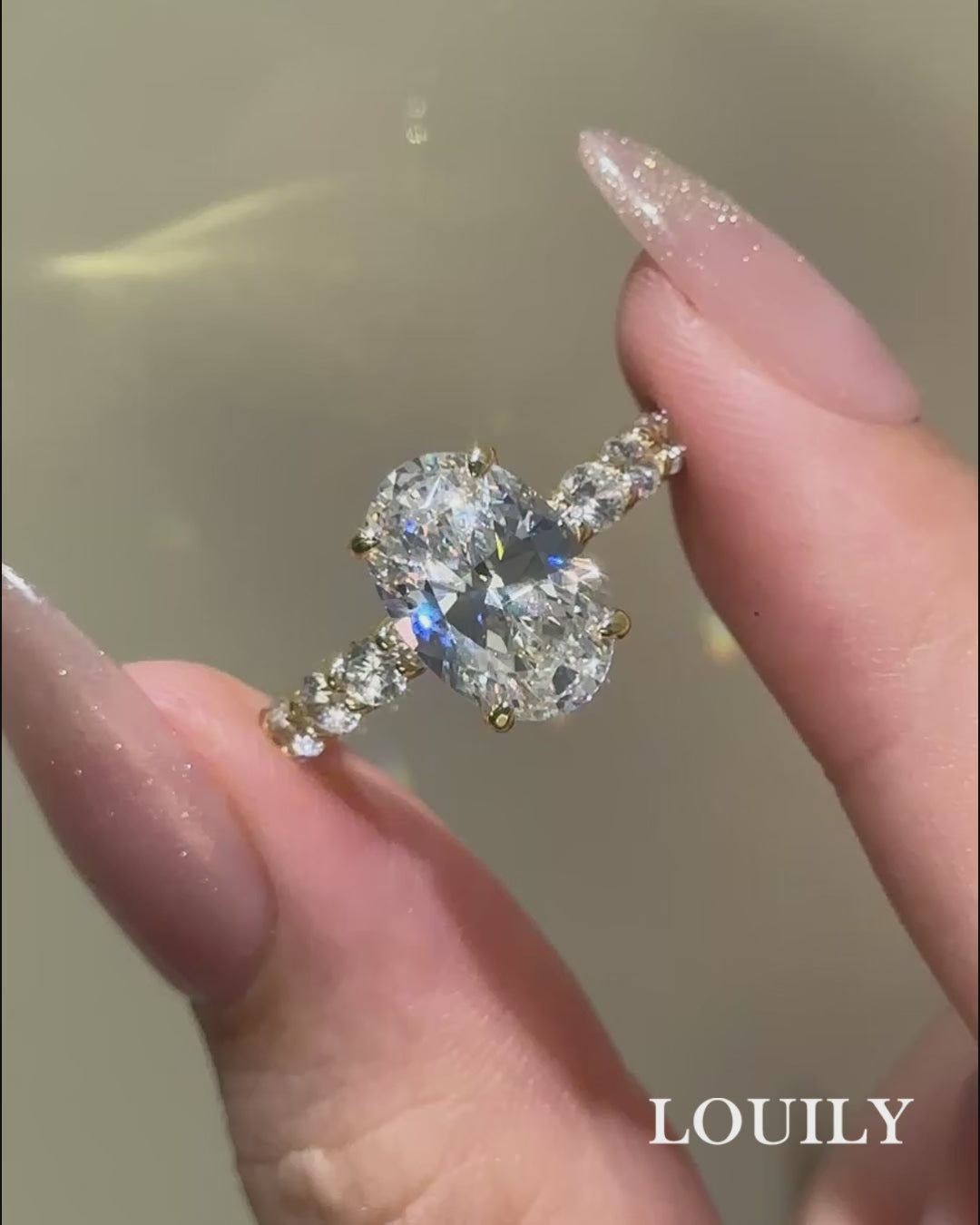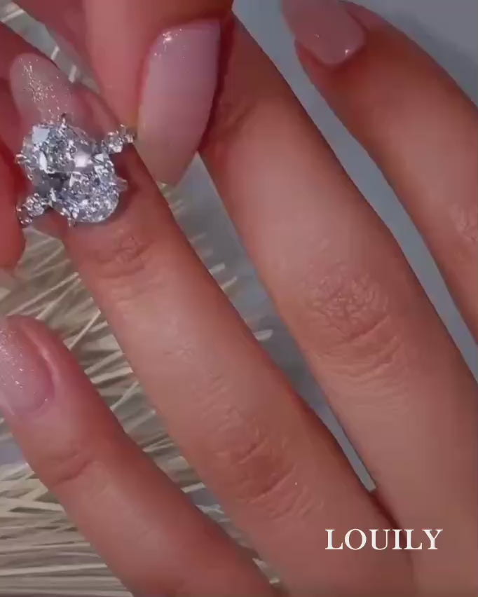 This luxe 4.0Ct oval cut engagement ring in sterling silver is nothing short of breathtaking. The elongated shape of the oval stone catches light from every direction, creating a radiant shimmer that's hard to ignore. Set in high-polish sterling silver, the sleek band provides the perfect contrast to the brilliance of the centerpiece. Designed for women who want a statement ring with classic elegance, it strikes a flawless balance between grace and glamour.