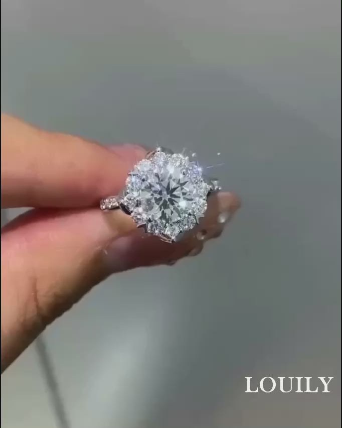 Moissanite 2.0 Ct Halo Round Cut White Gold Engagement Ring For Women