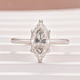 This 2.0 Ct marquise cut moissanite solitaire promise ring in white gold showcases a striking elongated silhouette that enhances the stone’s brilliance. Its minimalist setting allows the marquise cut to take center stage, offering a refined and sophisticated look.