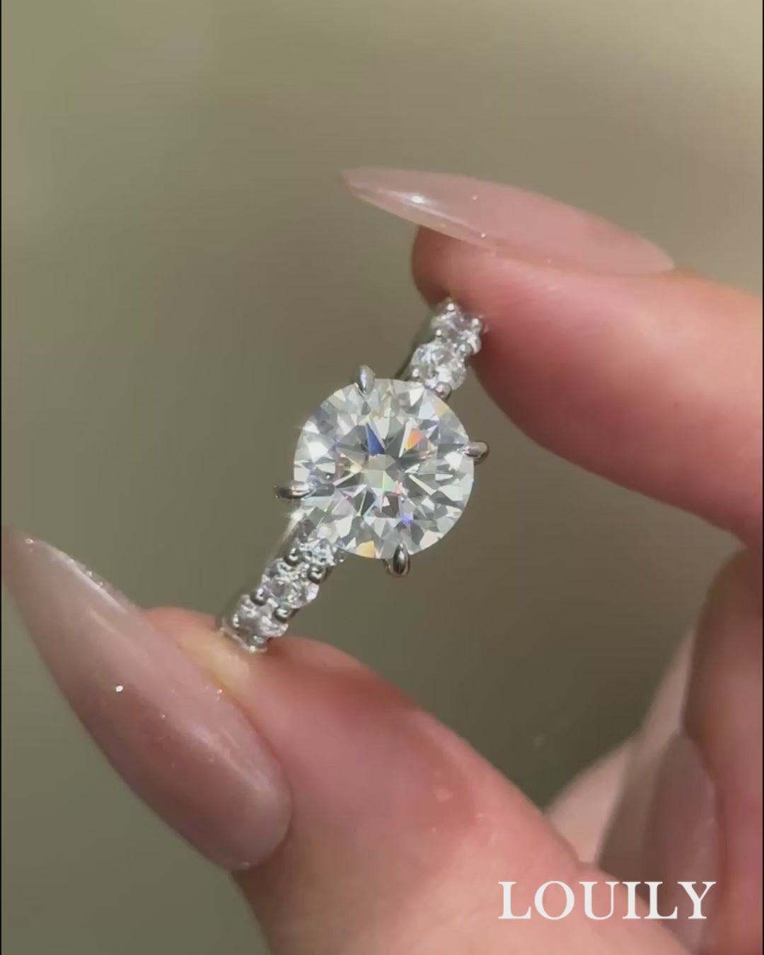 This 3.0Ct Moissanite round cut engagement ring in white gold showcases a dazzling center stone that captures light beautifully from every angle. Its simple yet sophisticated design highlights the stone’s sparkle, making it a perfect choice for enduring elegance.
