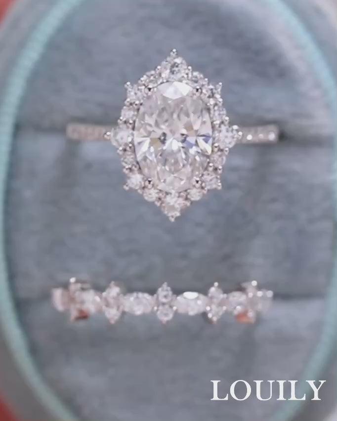 Vintage Halo 3.0Ct Oval Cut Wedding Ring Set With Unique Wedding Band