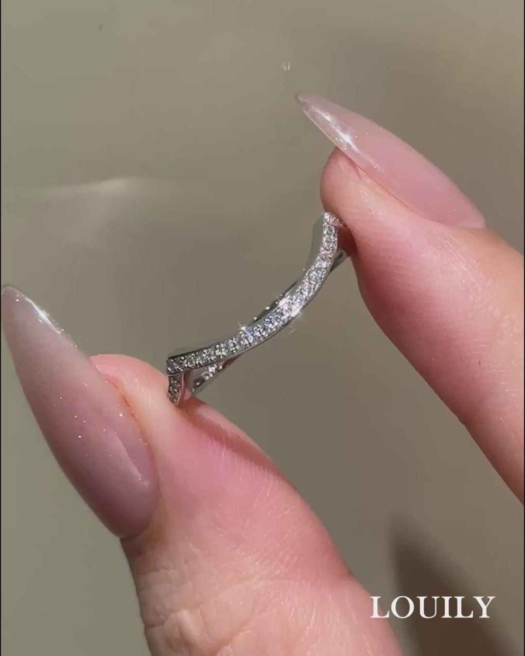 Crafted in sterling silver and finished in radiant white gold, it offers a brilliant luster and refined elegance that never goes out of style. The delicate curve adds visual interest while maintaining a minimalist feel, making it ideal for stacking or wearing solo.