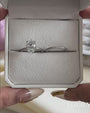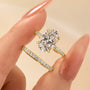 Paired with a delicate half eternity band, the combination offers just the right amount of shimmer while keeping the overall look refined and elegant. The shared-prong setting of the band adds a graceful flow of sparkle across the finger, complementing the centerpiece without overwhelming it.