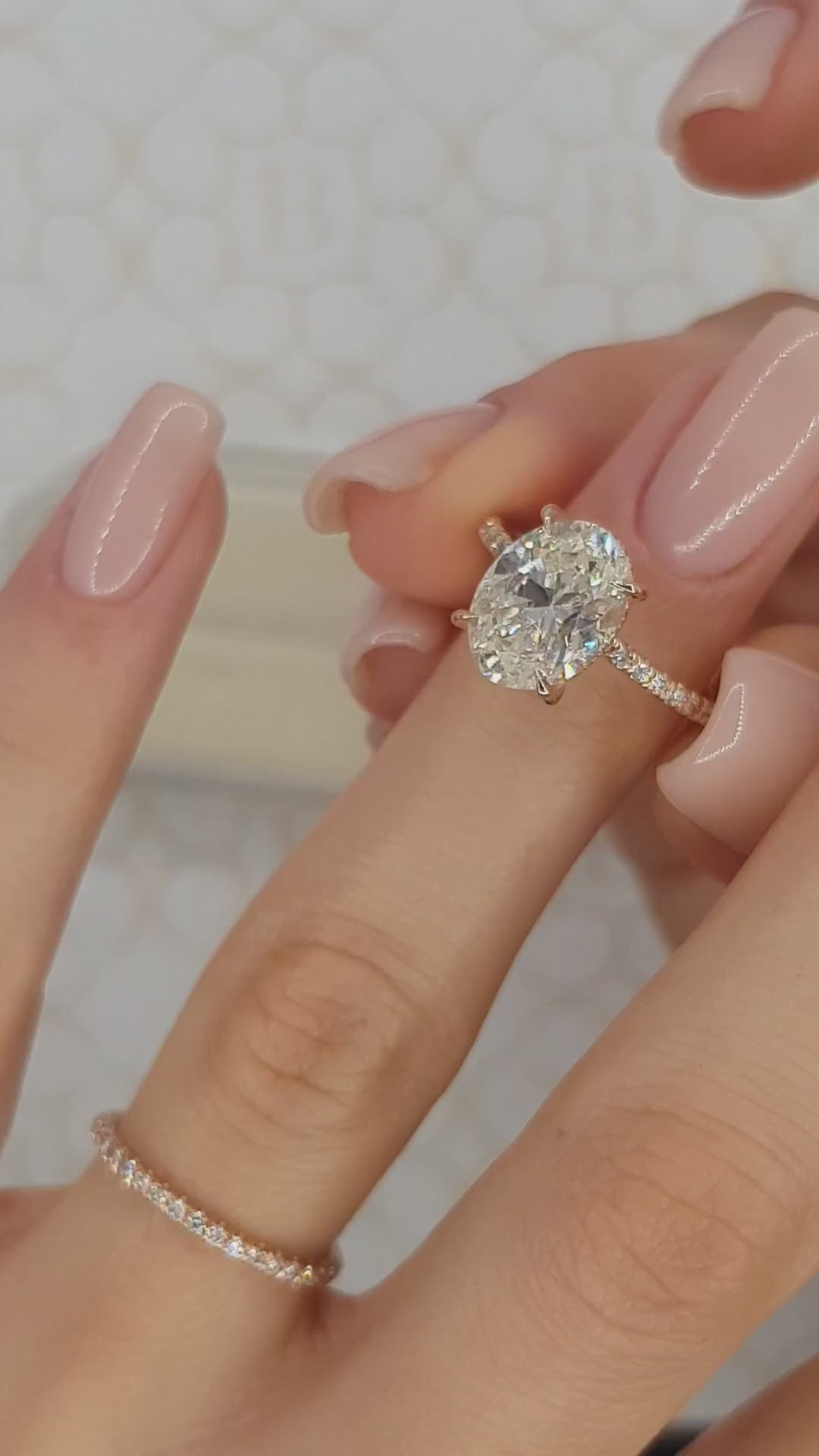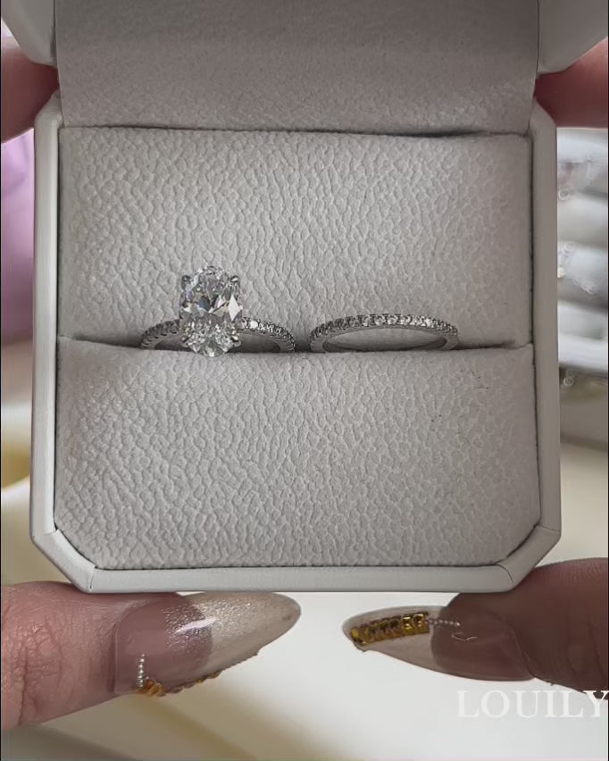 It is a beautifully coordinated set designed to capture the essence of lasting love. At the heart of the set is a brilliant 4.0 carat oval cut center stone, known for its flattering shape and radiant sparkle that dances in the light.