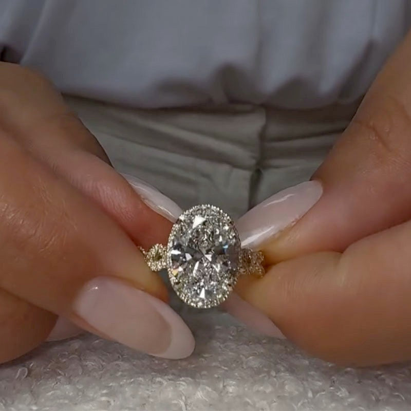 This ring was designed for the woman who loves timeless elegance with a modern edge, featuring a radiant 4.5 carat oval cut center stone that sparkles with every movement. Set in sterling silver, the graceful twist band adds a sculptural, contemporary feel while highlighting the brilliance of the center stone. Perfect as a statement engagement ring or glamorous travel ring, it offers a look that’s both sophisticated and unforgettable.