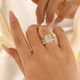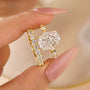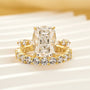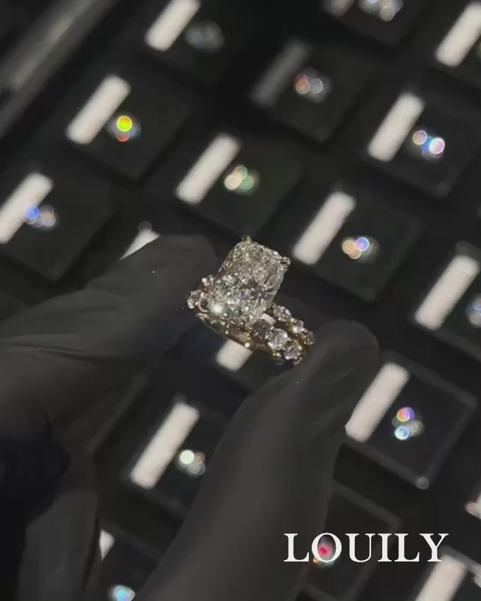 This 5.0Ct cushion cut engagement ring shines with a bold yet refined presence, its soft edges and radiant facets creating a truly captivating sparkle. Paired with a classic wedding band, the set balances modern brilliance with traditional elegance, making it a meaningful symbol of love and commitment.