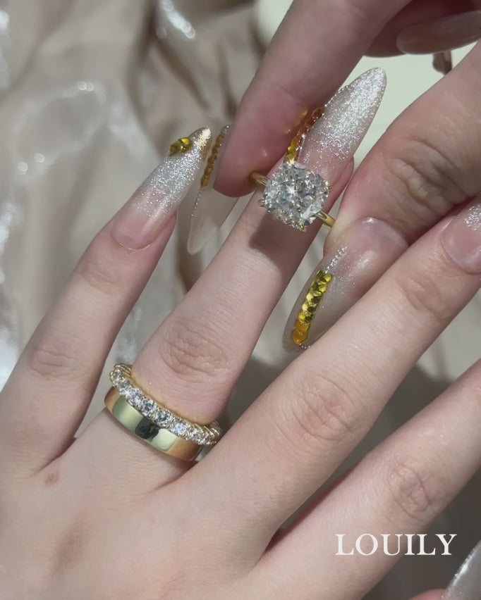 Louily 3PC Yellow Gold 5.0 Carat Cushion Cut Women's Wedding Ring Set With Wide Wedding Band