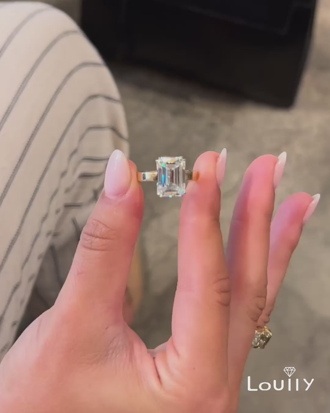 Make her heart skip a beat with Louily's captivating yellow gold emerald cut engagement ring. An exquisite gemstone crafted of precious metals, this gorgeous ring is sure to add a luxurious touch to your special moment. Add a hint of sophistication and charm to your proposal with this timeless piece.