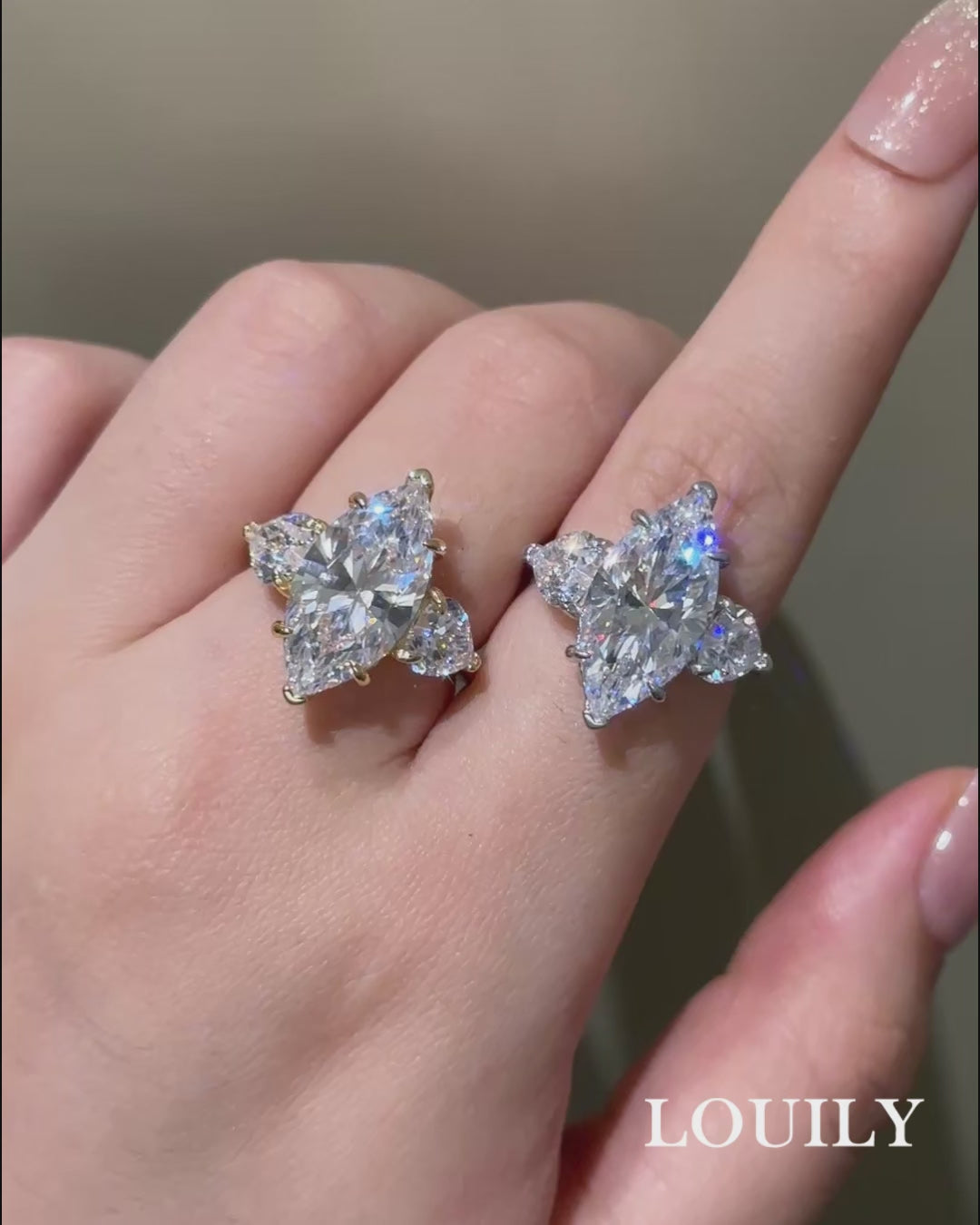 Louily Marquise Cut Three Stone Engagement Ring In Sterling Silver