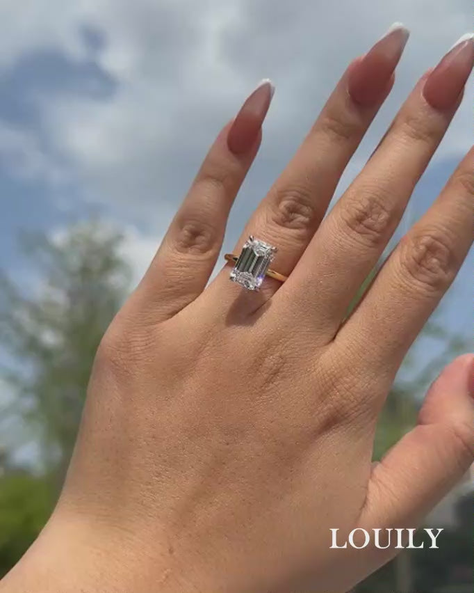 Louily Two-Tone Emerald Cut Engagement Ring