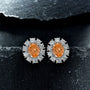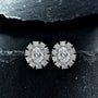 These stud earrings feature a 2.0 carat oval cut center stone set in a graceful flower-shaped design, capturing both sparkle and femininity in one beautiful piece. Crafted in sterling silver, they add a refined yet playful touch to any outfit—perfect for everyday wear or special occasions.