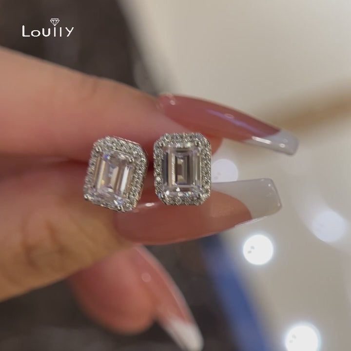 3.0 Carat Halo Sparkle Women's Stud Earrings In Sterling Silver