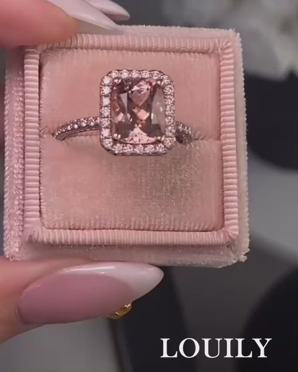 3.0Ct Radiant Cut Halo Pink Stone Engagement Ring In Sterling Silver
