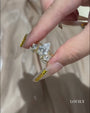 This 4.0 Ct pear cut insert wedding ring set in sterling silver is a beautiful fusion of vintage charm and modern design. The insert setting gently hugs the pear-shaped center stone, creating a unique layered look that’s both elegant and secure. The graceful taper of the pear cut elongates the finger while the double band adds dimension and style, making it a standout piece for any woman who loves a sophisticated, statement-worthy ring.