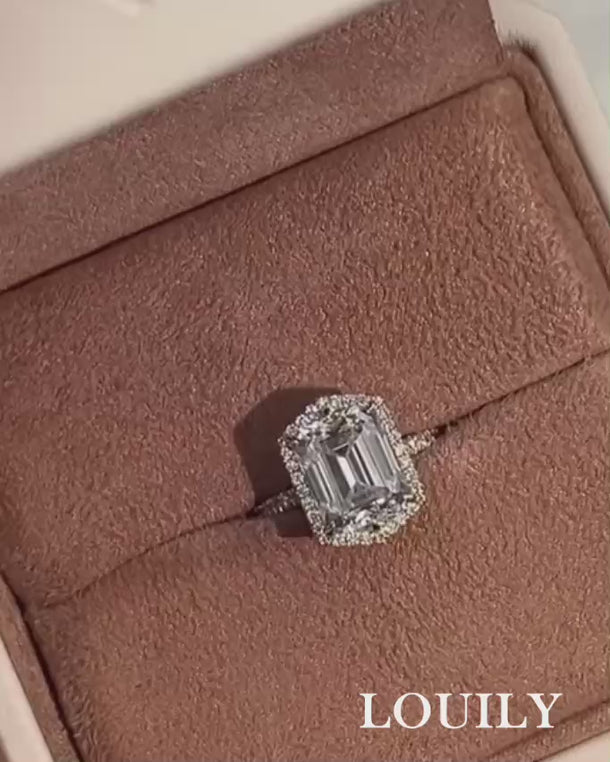 4.0Ct Emerald Cut Halo Engagement Ring Travel Rings In Sterling Silver