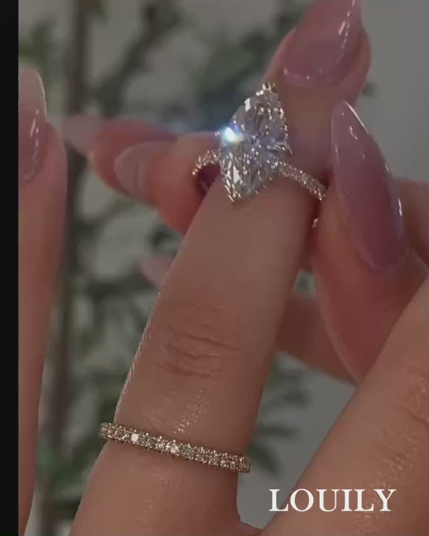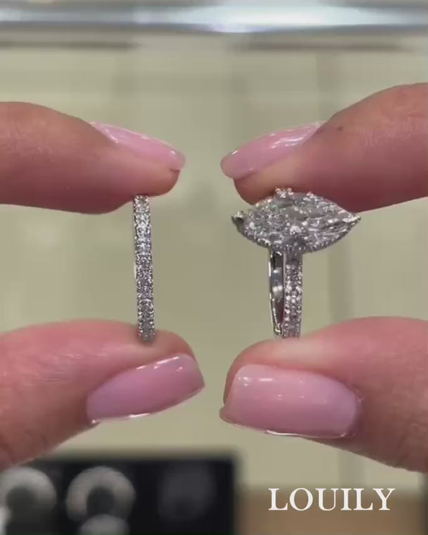 Paired with a sleek, classic wedding band, the set strikes a beautiful balance between bold and refined. The band’s minimalist design allows the marquise cut to take center stage while adding a timeless layer of symbolism and sentiment.