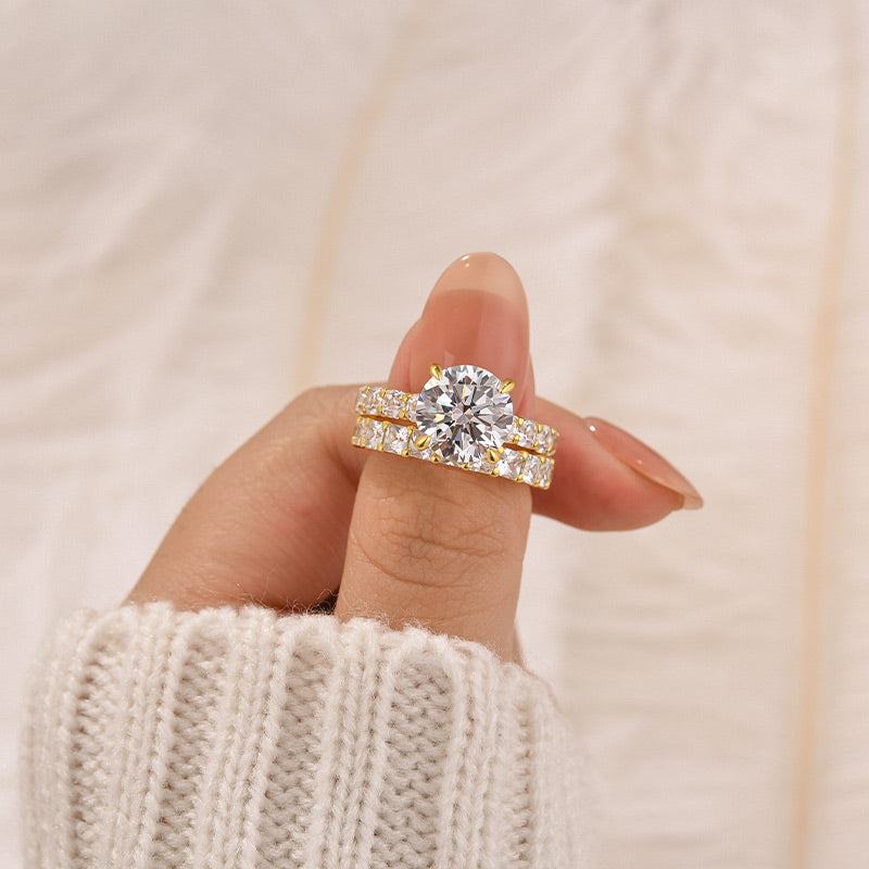 2PC Elegant 4.0Ct Round Cut Wedding Ring Set Engagement Ring With Eternity