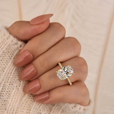 Bright 5.5Ct Cushion Cut Pavé Yellow Gold Engagement Ring For Women In Sterling Silver